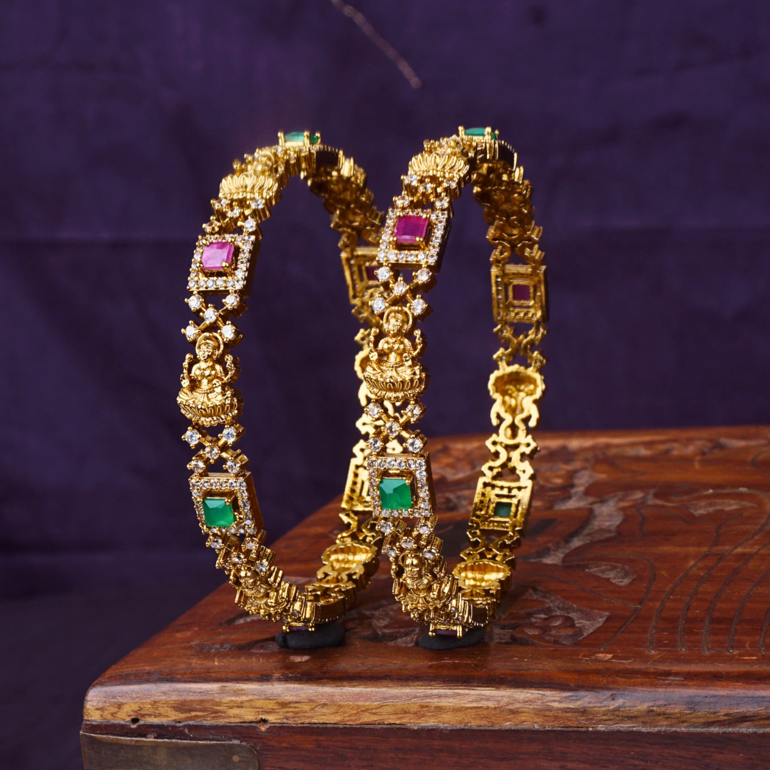 Premium quality matte finish bangles crafted from high-quality alloy, embellished with emerald and ruby stones